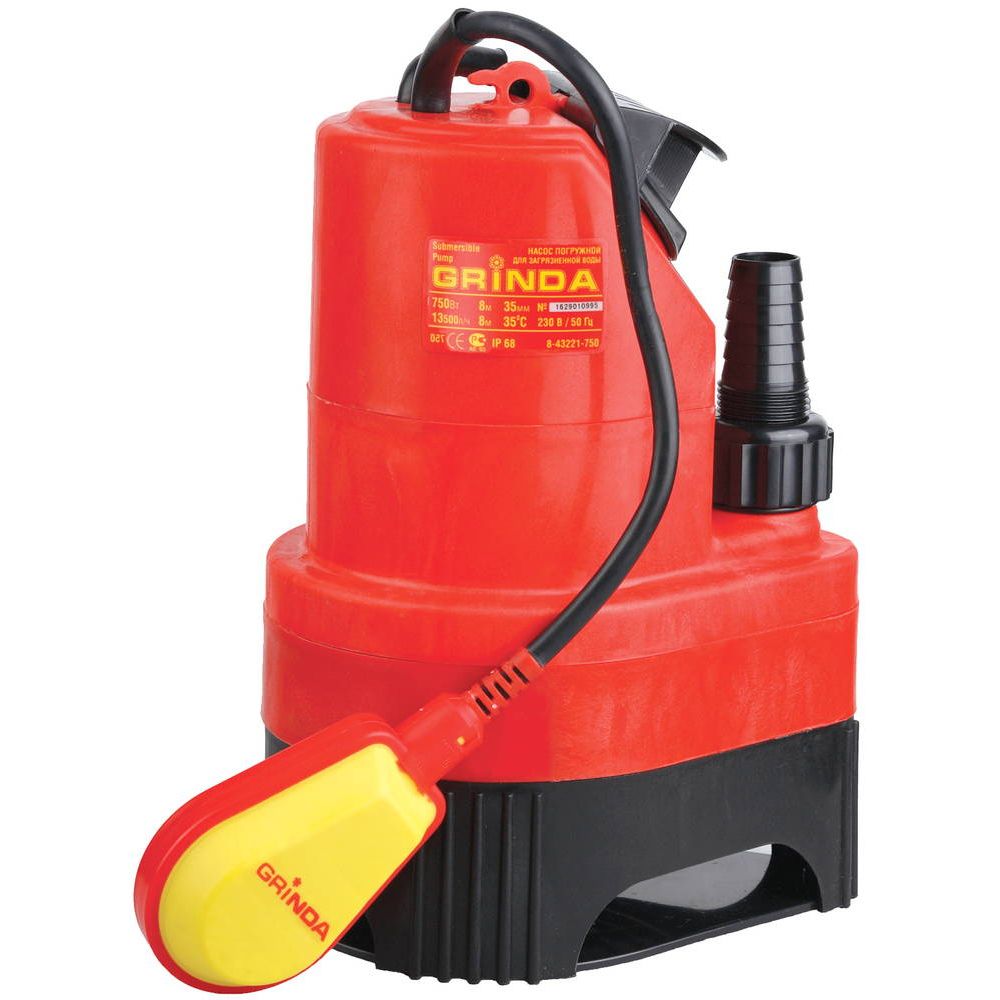 Насос GRINDA д/грязной воды погружной, пропускная способность 13500 л/час, высота подачи воды 8 м, 750 Вт 8-43221-750