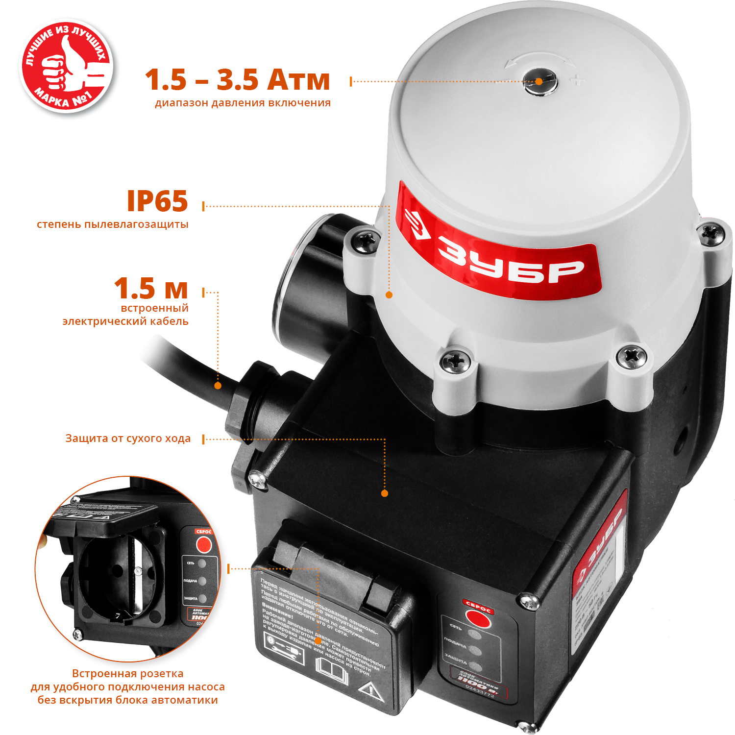 Установка данного устрройства превращает практически любую систему водоснабжения на приусадебном участке в автоматическую с постоянным поддержанием давления. Работает с любым насосом (погружным, поверхностным, центробежным, вибрационным). Более правильный алгоритм отключения по контролю за расходом, а не давлением. ЗУБР - инновационные решения для Вашего комфорта.