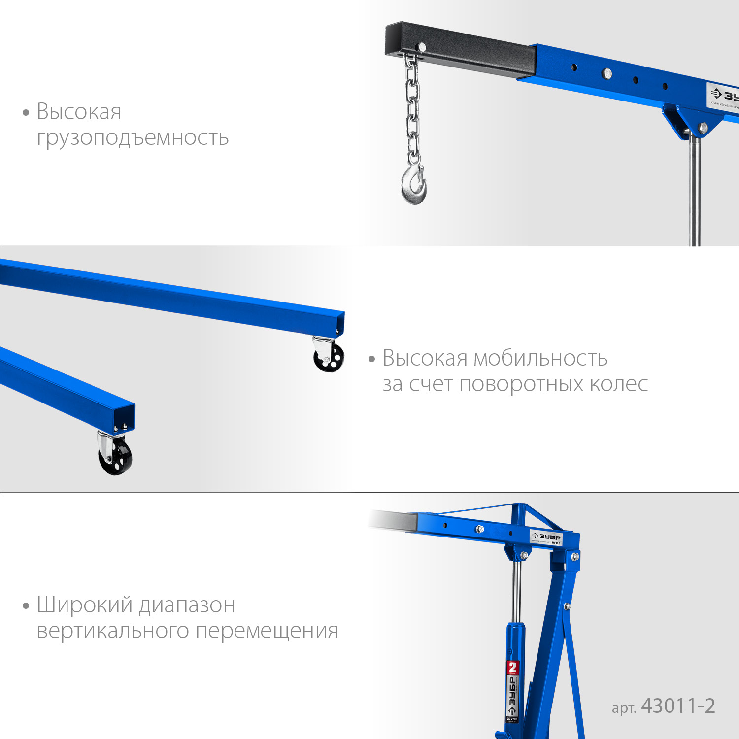 Автономное устройство для поднятия и перемещения груза, не требующее дополнительных приспособлений. В основном используются в авторемонтных мастерских, на станциях техобслуживания для извлечения и перемещения внутри помещения ДВС и других крупных деталей автомобилей.