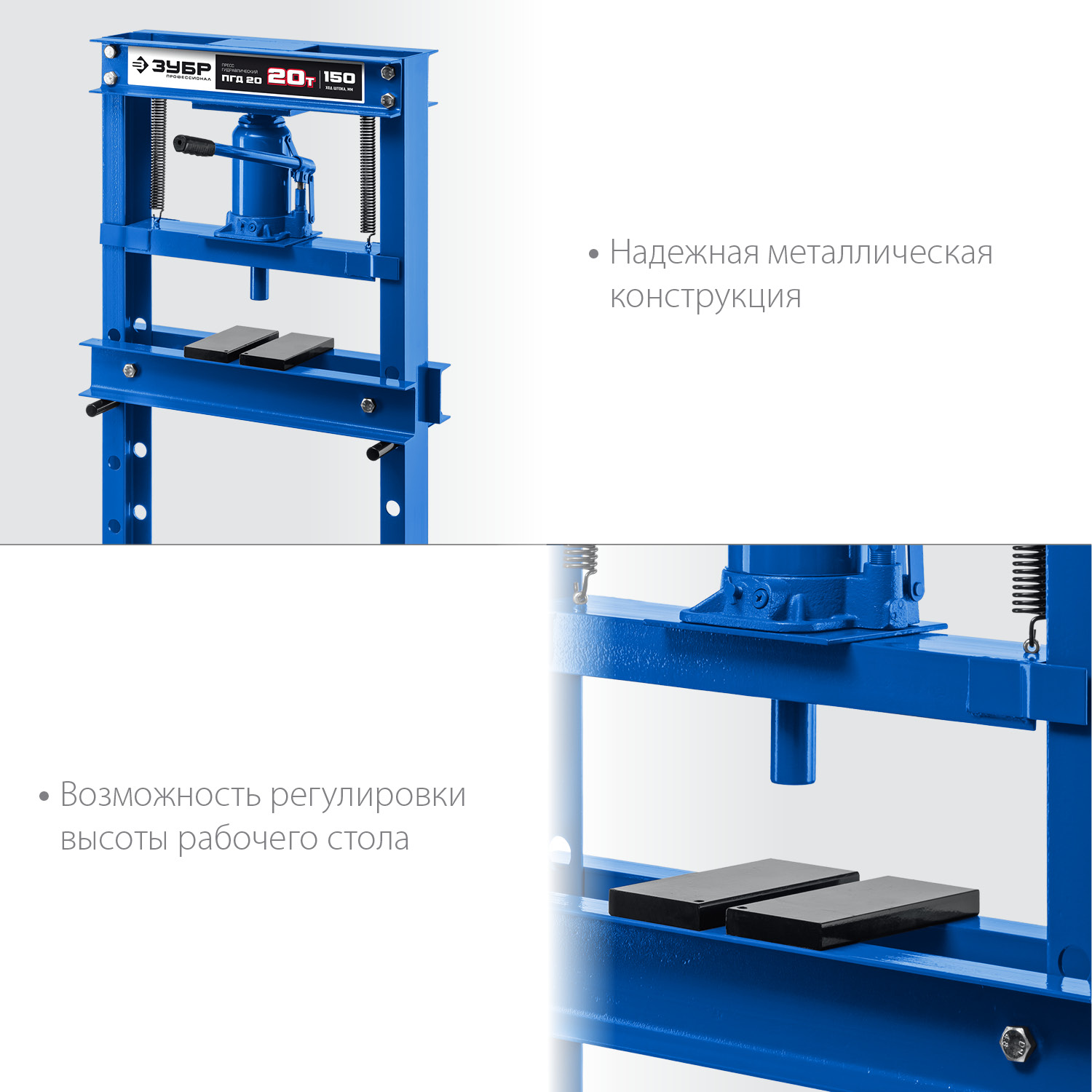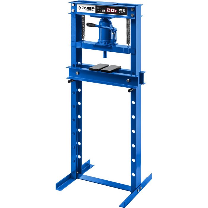Пресс ЗУБР - мощный инструмент для запрессовки деталей. Отличается прочной металлической конструкцией. Широкое Н-образное основание надежно крепится к полу анкерными болтами. Силовым элементом пресса является домкрат, который при работе опускает подъемную платформу и запрессовывает деталь
