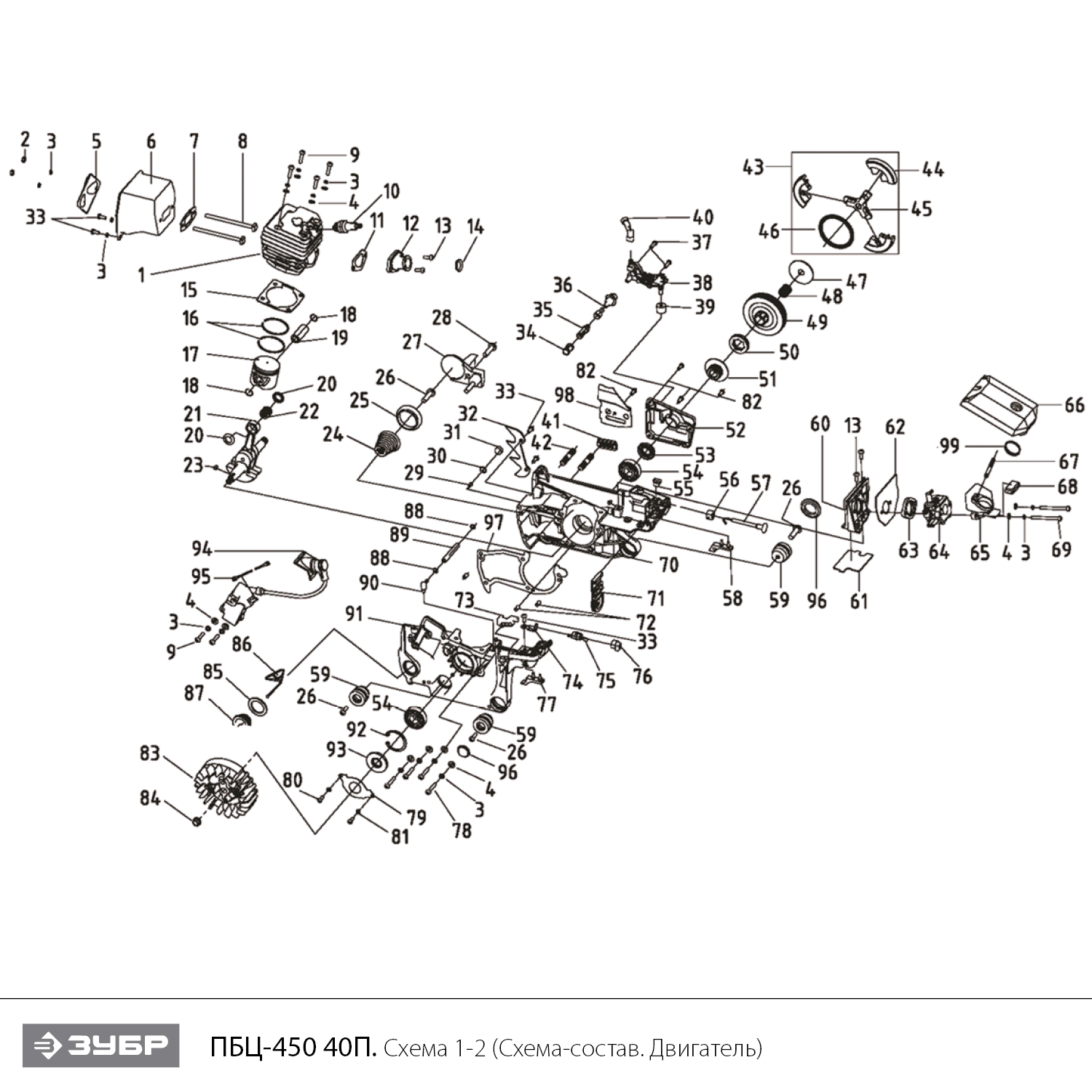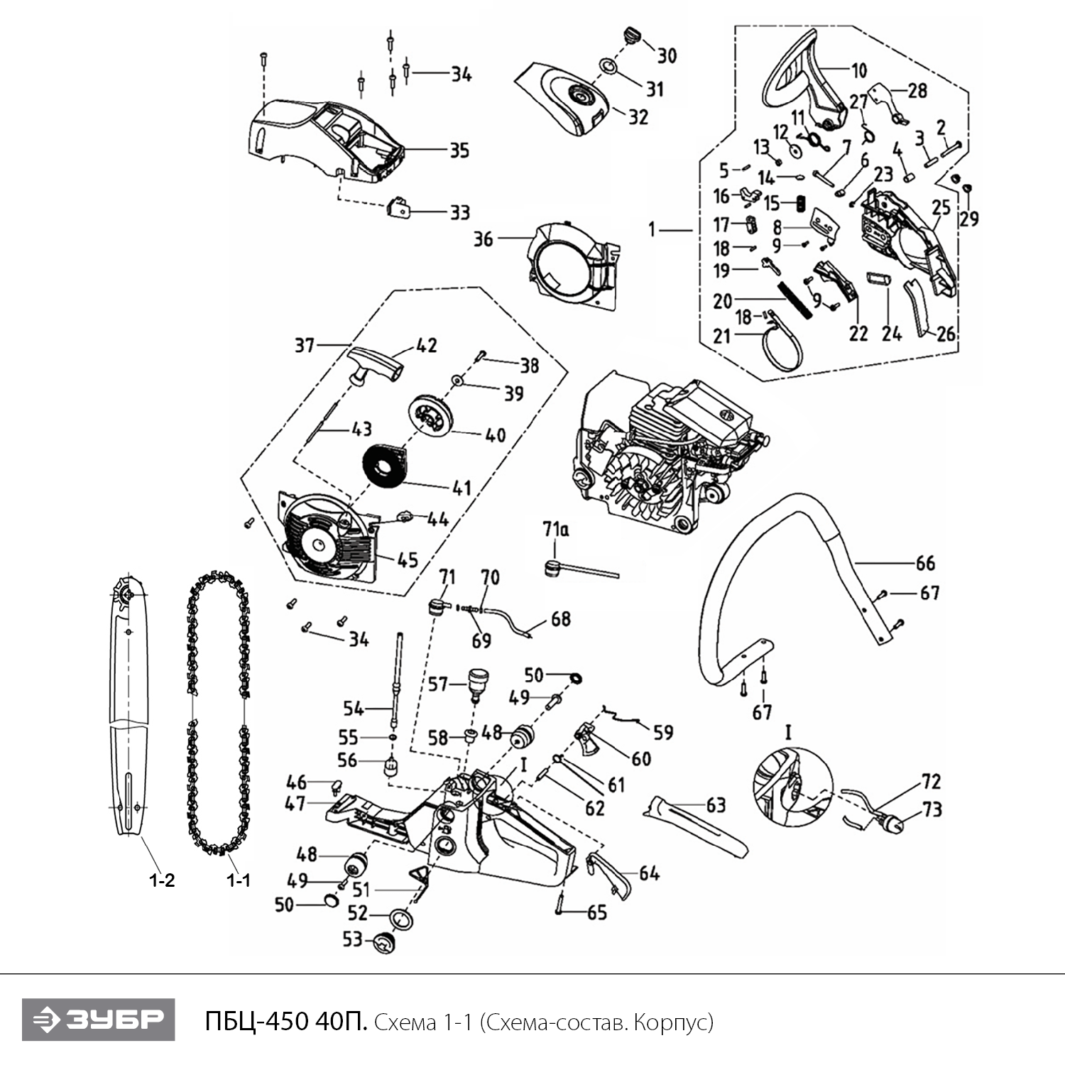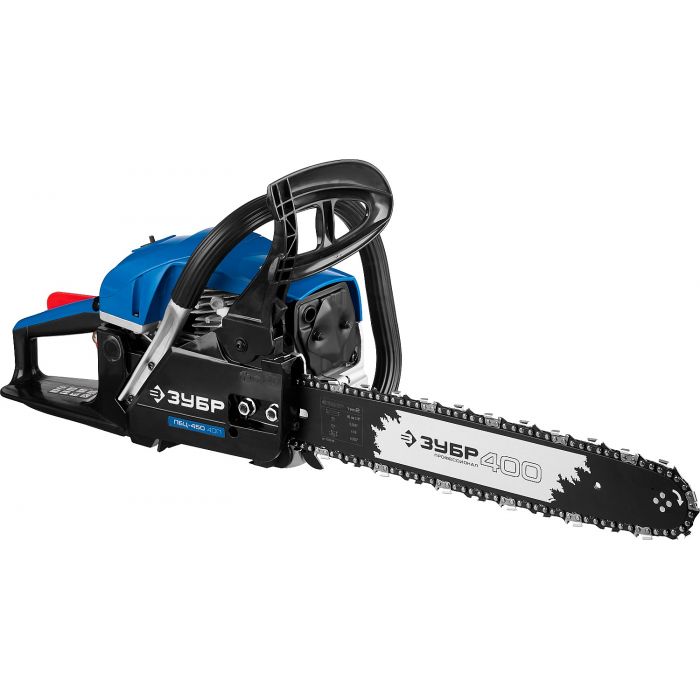 Идеальный вариант для пиления досок, бруса, стволов различных пород дерева на дачном участке. В отличие от электрической, бензиновая пила оснащена более мощным двигателем, безопасна в отношении поражения электрическим током, может работать в любую погоду и в любом месте. Функции легкого запуска, автоматической смазки цепи и эффективная антивибрационная защита делают пилу легкой в обращении и комфортной в работе. Двойной тормоз цепи, приводимый в действие при откидывании защитного щитка или при отпускании клавиши блокировки на рукоятке, а также встроенный цепеуловитель и металлический упор делают пилу безопасной в применении. Большая удельная мощность, высокое качество применяемых материалов и изготовления, обеспечивающие увеличенный ресурс, делают бензиновую пилу ЗУБР Вашим лучшим помощником