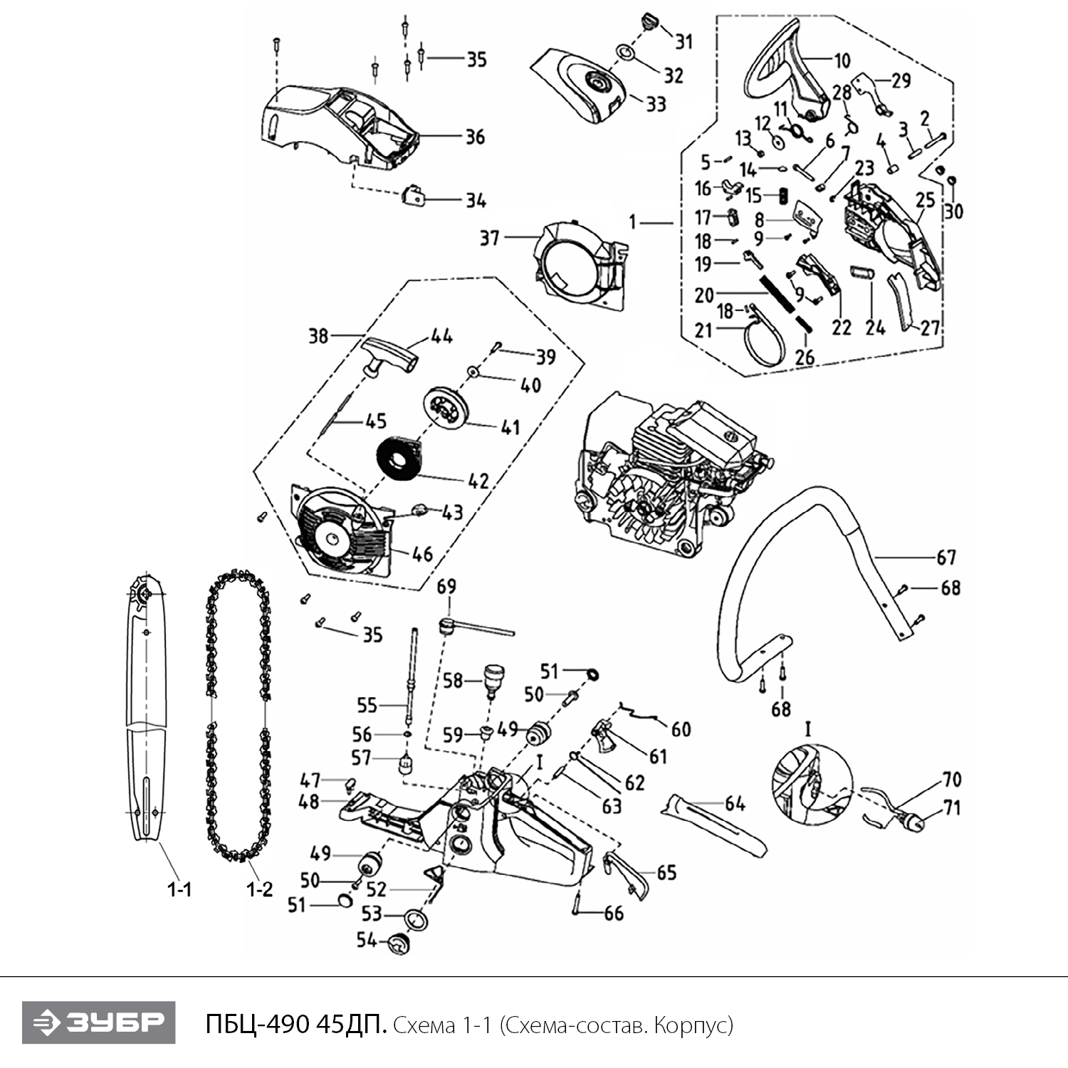 Идеальный вариант для пиления досок, бруса, стволов различных пород дерева на дачном участке. В отличие от электрической, бензиновая пила оснащена более мощным двигателем, безопасна в отношении поражения электрическим током, может работать в любую погоду и в любом месте. Функции легкого запуска, автоматической смазки цепи и эффективная антивибрационная защита делают пилу легкой в обращении и комфортной в работе. Двойной тормоз цепи, приводимый в действие при откидывании защитного щитка или при отпускании клавиши блокировки на рукоятке, а также встроенный цепеуловитель и металлический упор делают пилу безопасной в применении. Большая удельная мощность, высокое качество применяемых материалов и изготовления, обеспечивающие увеличенный ресурс, делают бензиновую пилу ЗУБР Вашим лучшим помощником