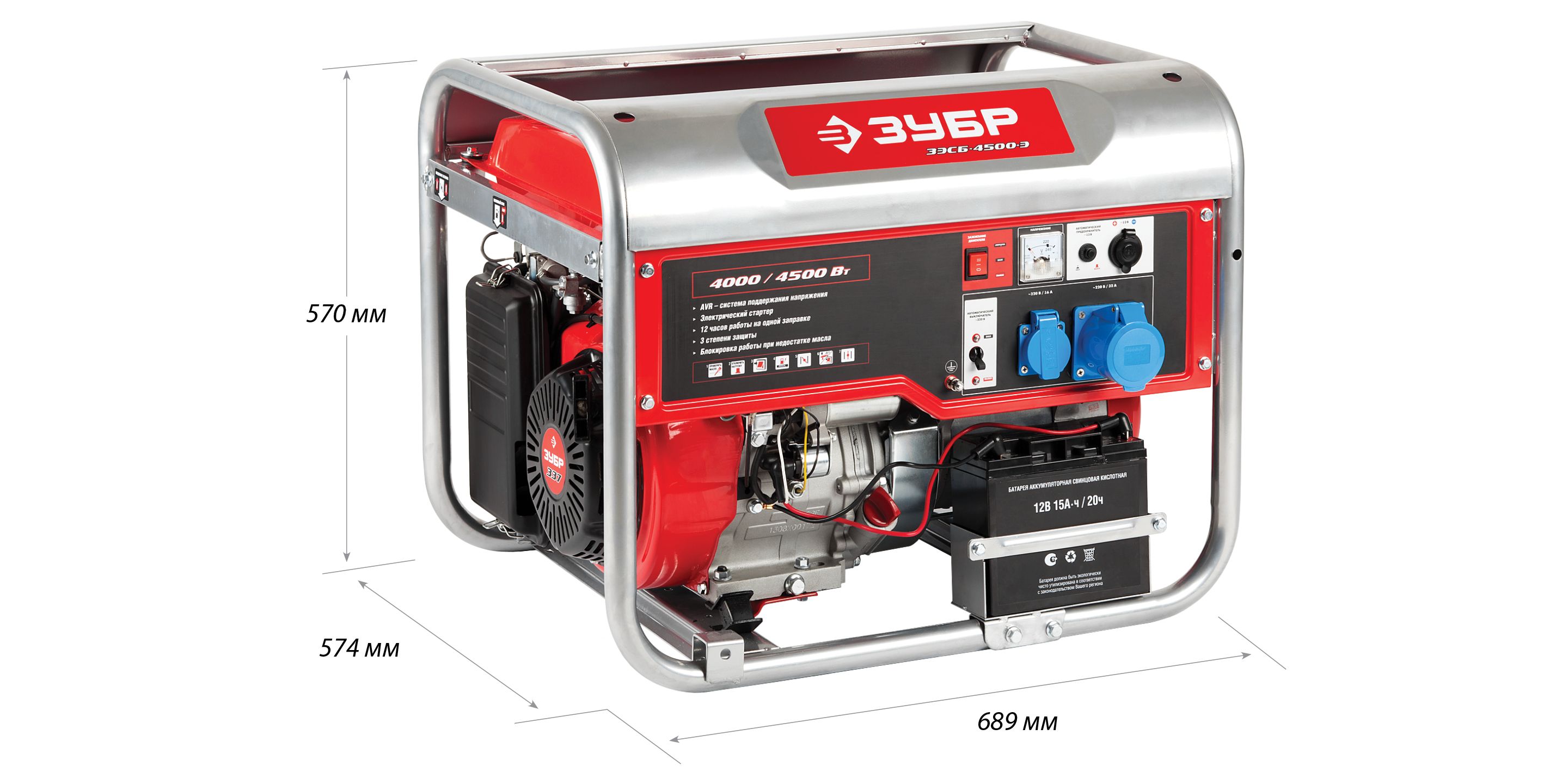 ДЛЯ ЗАГОРОДНОГО ДОМА Мощный генератор, который пригодится не только в загородном доме, но и в мастерской, и на строительной площадке, и вообще везде, где нет стационарного электричества, но нужно иметь работающий приборы и инструмент. Высокое качество выходной энергии позволяет запитывать даже требовательную электронную технику. Электрический стартер не только облегчает запуск (особенно в зимнее время), но и делает его даже приятным: раз - и готово. Дополнительная розетка увеличенной мощности для подключения таких потребителей, как нагреватели, калориферы, осветительная техника или несколько потребителей одновременно. ЗУБР - мы делаем технику для Ваших нужд