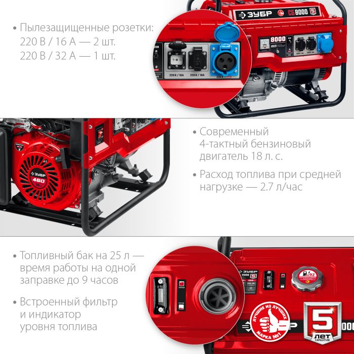 Мощный генератор, который пригодится не только в загородном доме, но и в мастерской, и на строительной площадке, и вообще везде, где нет стационарного электричества, но нужно иметь работающую технику и инструмент. Высокое качество выходной энергии позволяет запитывать даже требовательную электронную технику. Дополнительная розетка увеличенной мощности для подключения таких потребителей, как нагреватели, калориферы, осветительная техника или несколько потребителей одновременно.