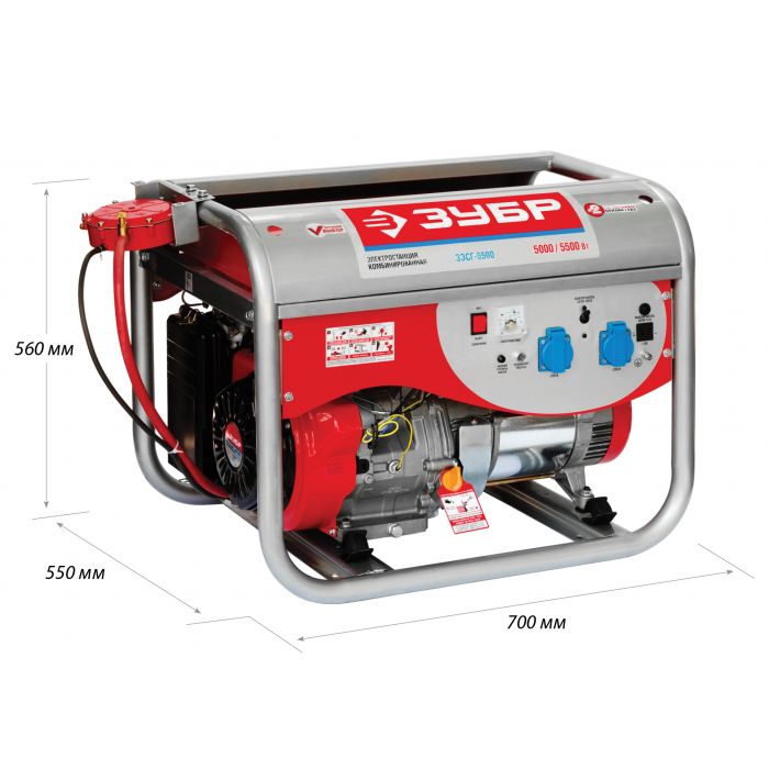 Мощный двухтопливный электрогенератор мощностью 5.5 кВт, работающих как на бензине (АИ-92), так и на газе – при этом, для использования газа не требуется установка дополнительного оборудования. Генератор этой модели используется в загородном доме, строительной площадке и дачном участке для питания бытовой техники, насосных станций и электронагревателей.