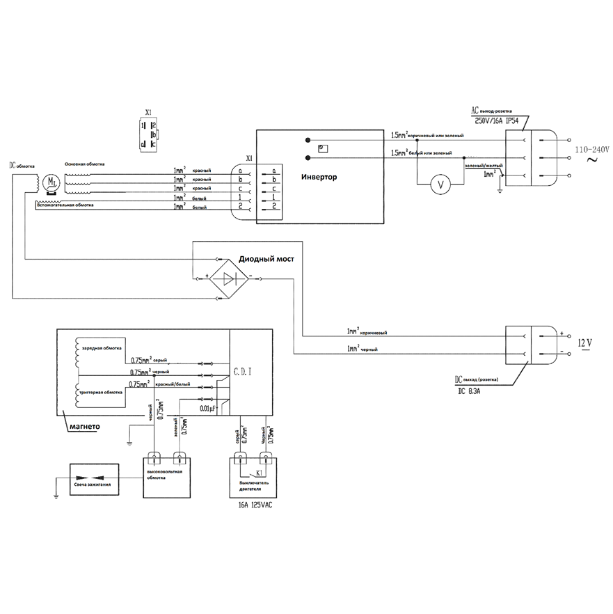 бензиновый инверторный, однофазный, постоянные магниты