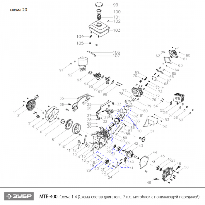 Мотоблок бензиновый с понижающей передачей МТБ-400