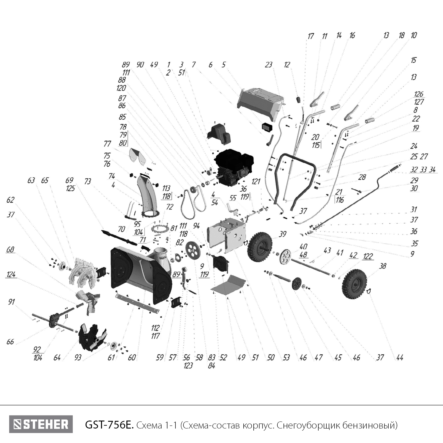 -Снегоуборщик, 1 шт, -Колесо, 2 шт, -Комплект крепежа, 1 шт, -Руководство по эксплуатации, 1 шт,: