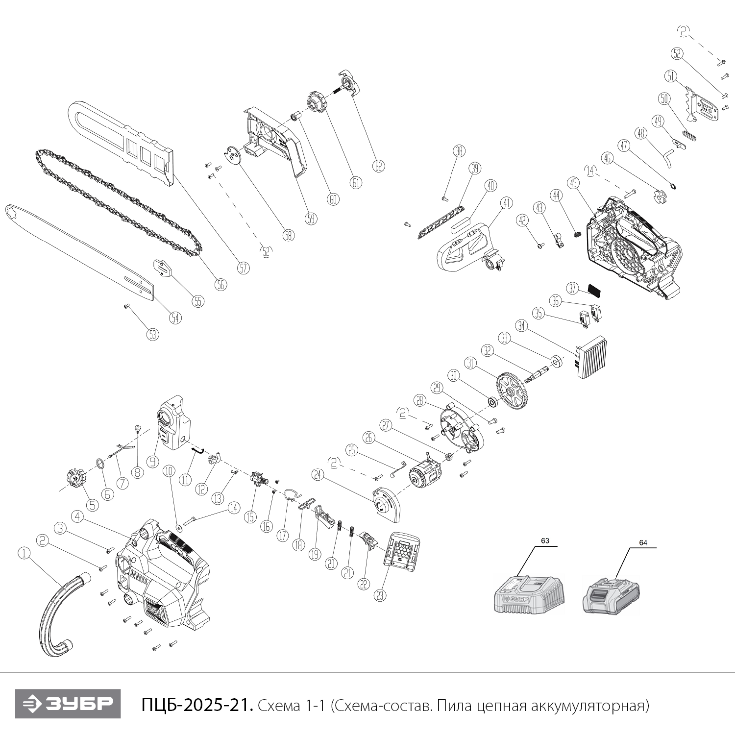 Пила цепная аккумуляторная 20 В, 1 АКБ LMS (2 Ач) ПЦБ-2025-21