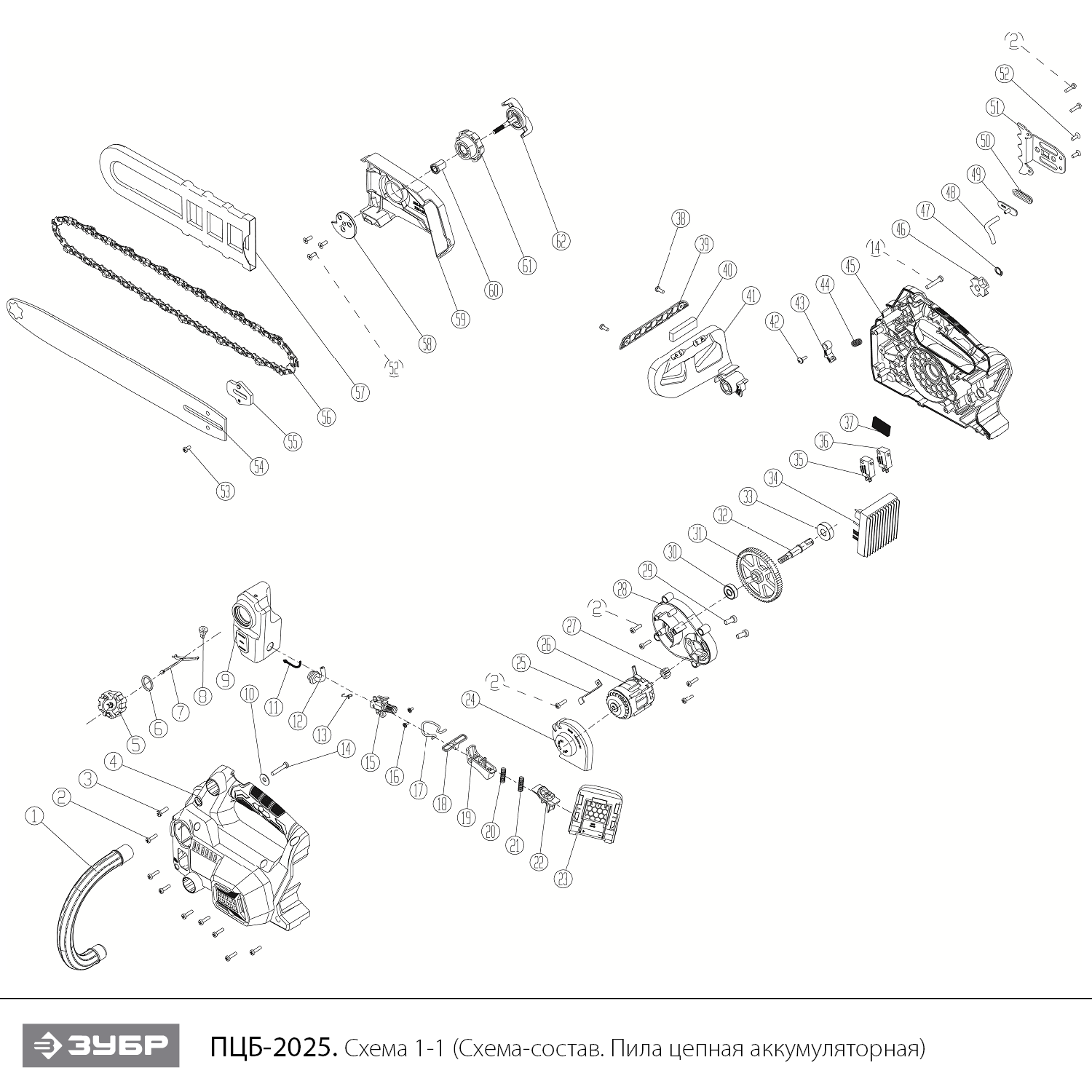 Пила цепная аккумуляторная 20 В, без АКБ (LMS) ПЦБ-2025