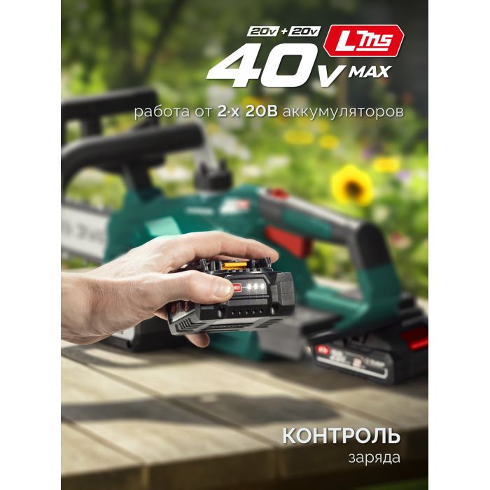 Пила цепная аккумуляторная 40 В, 2 АКБ LMS (2 Ач) ПЦБ-4030-22
