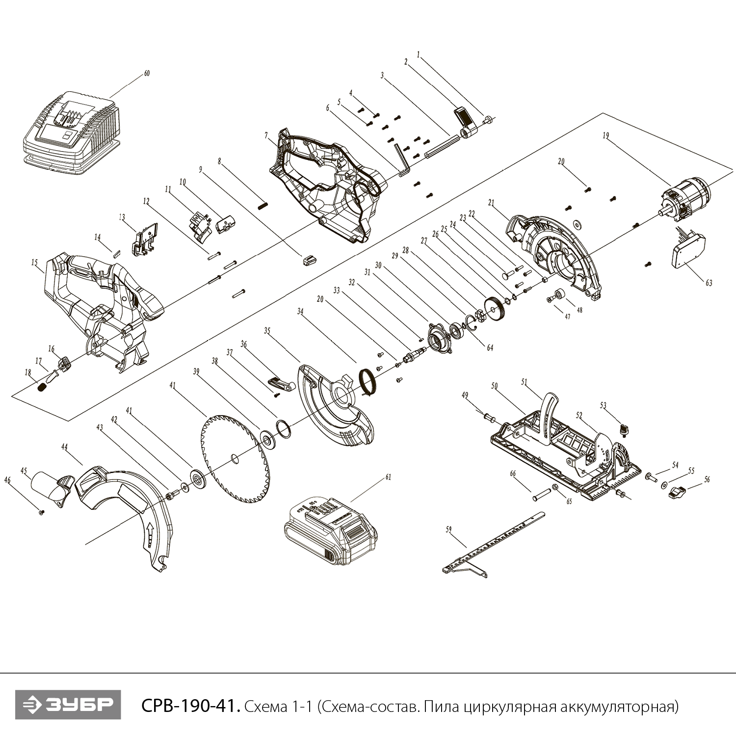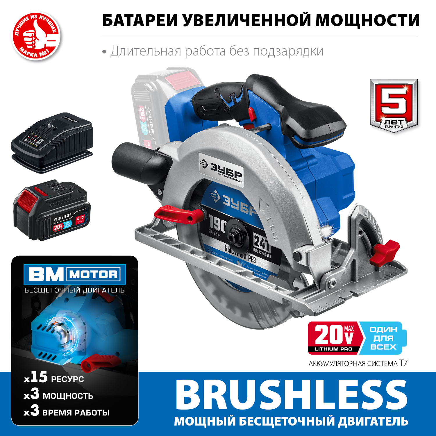 Бесщеточная пила циркулярная, 1 АКБ T7 (4 Ач), в коробке CPB-190-41
