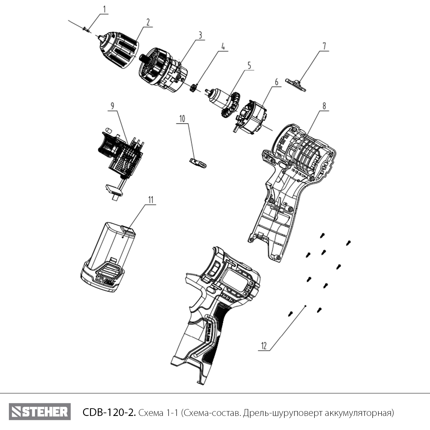 Бесщеточная дрель-шуруповерт, 2 АКБ (2 Ач), в кейсе CDB-120-2
