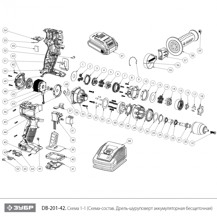 Бесщеточная дрель-шуруповерт, 2 АКБ T7 (4 Ач), в кейсе DB-201-42