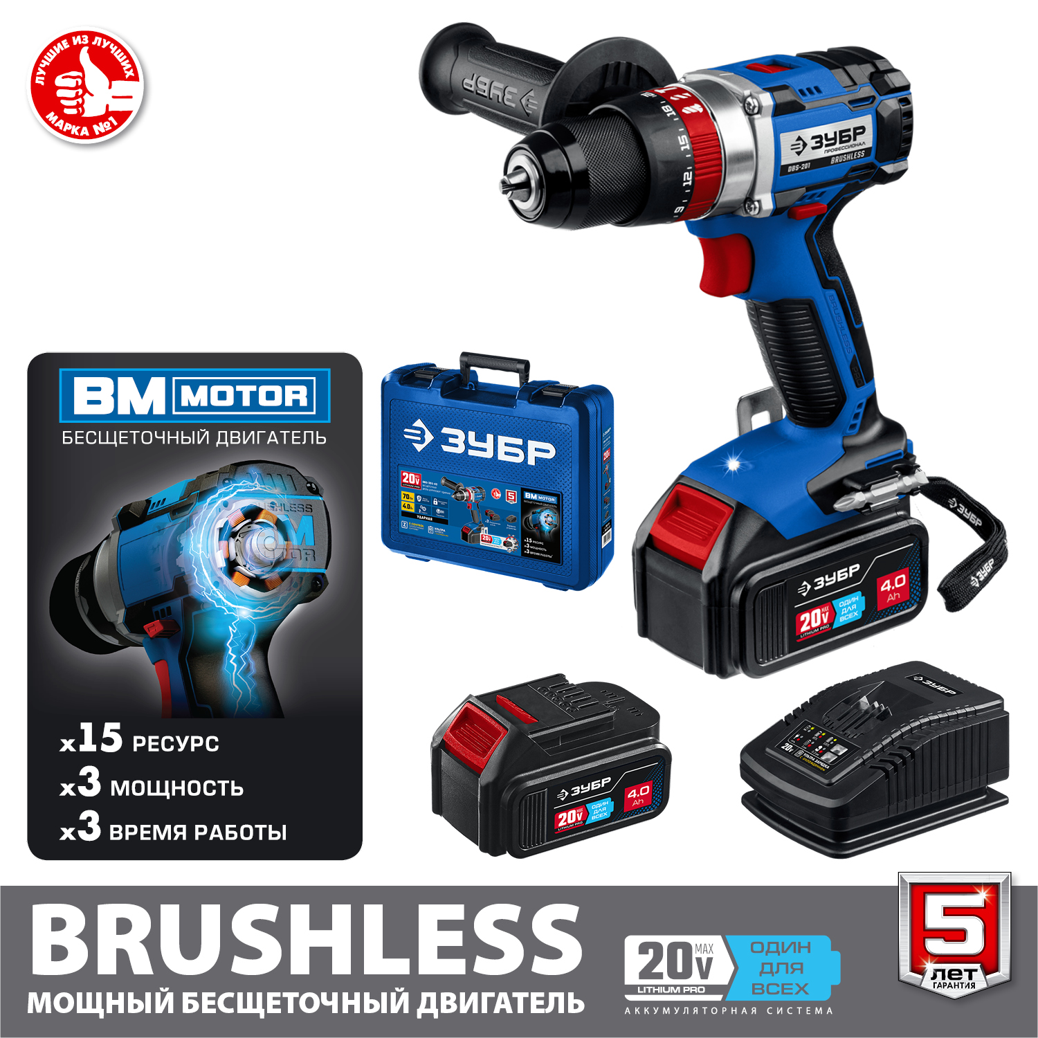 Бесщеточная дрель-шуруповерт ударная, 2 АКБ T7 (4 Ач), в кейсе DBS-201-42