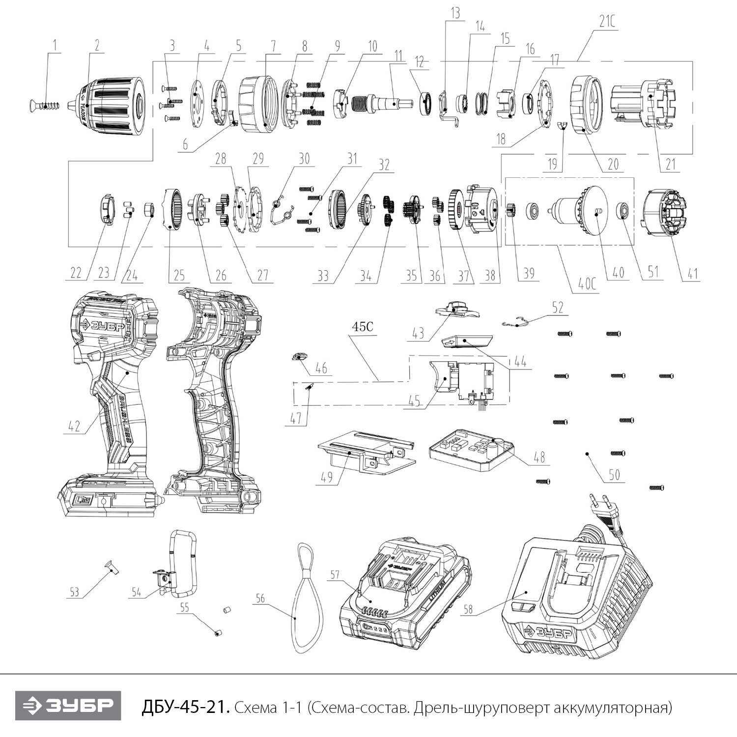 Бесщеточная ударная дрель-шуруповерт, 1 АКБ LMS (2 Ач), в коробке ДБУ-45-21