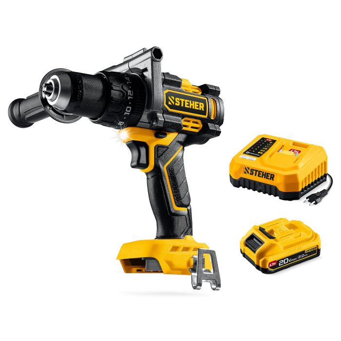 Бесщеточная ударная дрель-шуруповерт STEHER системы LMS с увеличенным крутящим моментом предназначена для быстрого заворачивания саморезов до 12 мм диаметром и сверления отверстий до 40 мм в дереве. Длительная работа от одного заряда обеспечивается эффективным двигателем BRUSHLESS. Расширенная функциональность за счет ударного режима работы. Комплектация с аккумулятором позволяет начать работу сразу после покупки