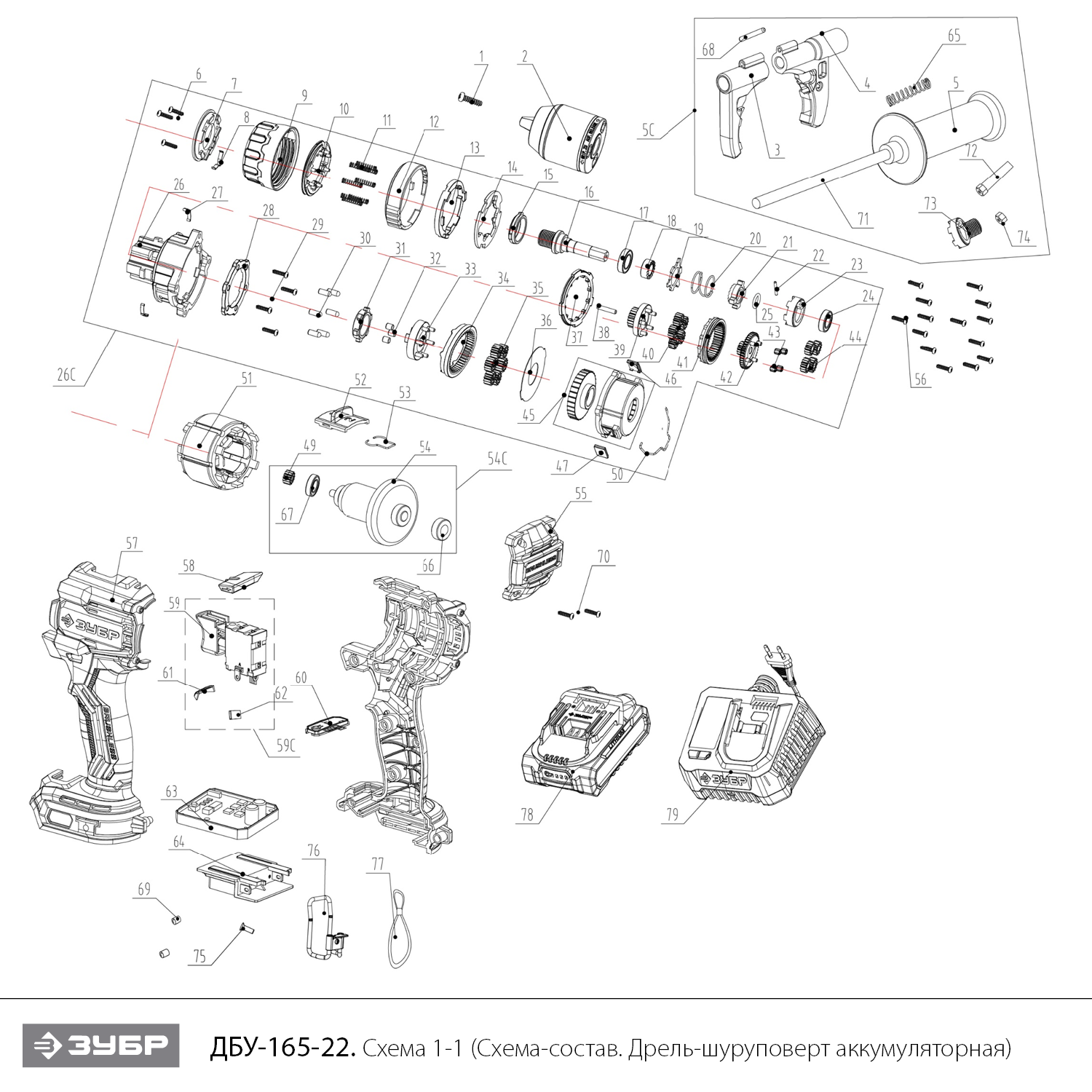 Бесщеточная ударная дрель-шуруповерт, 2 АКБ LMS (2 Ач), в сумке ДБУ-165-22