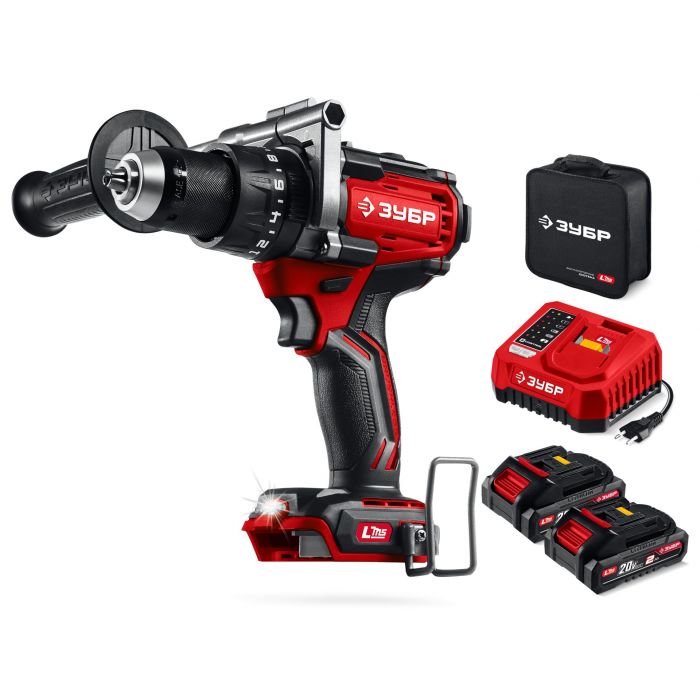 Бесщеточная ударная дрель-шуруповерт ЗУБР системы LMS с увеличенным крутящим моментом предназначена для быстрого заворачивания саморезов до 12 мм диаметром и сверления отверстий до 40 мм в дереве. Длительная работа от одного заряда обеспечивается эффективным двигателем BRUSHLESS. Расширенная функциональность за счет ударного режима работы. Комплектация с двумя аккумуляторами позволяет работать практически без остановки