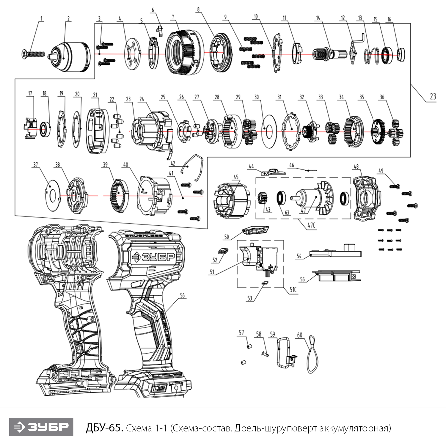 Бесщеточная ударная дрель-шуруповерт, без АКБ (LMS),в коробке ДБУ-65