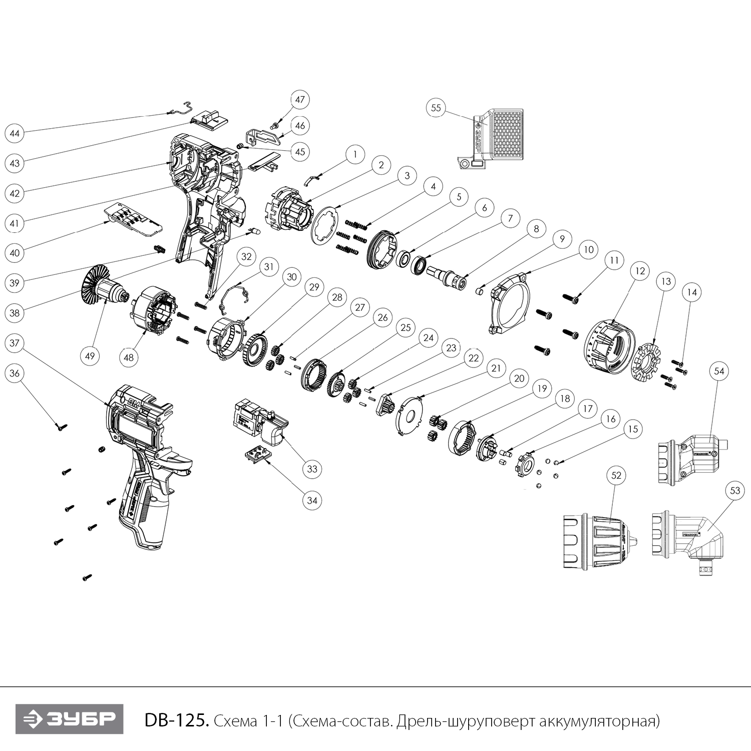 Бесщеточная модульная дрель-шуруповерт КОМБИ #1, 3 насадки-патрона, без АКБ (T7), в коробке DB-125