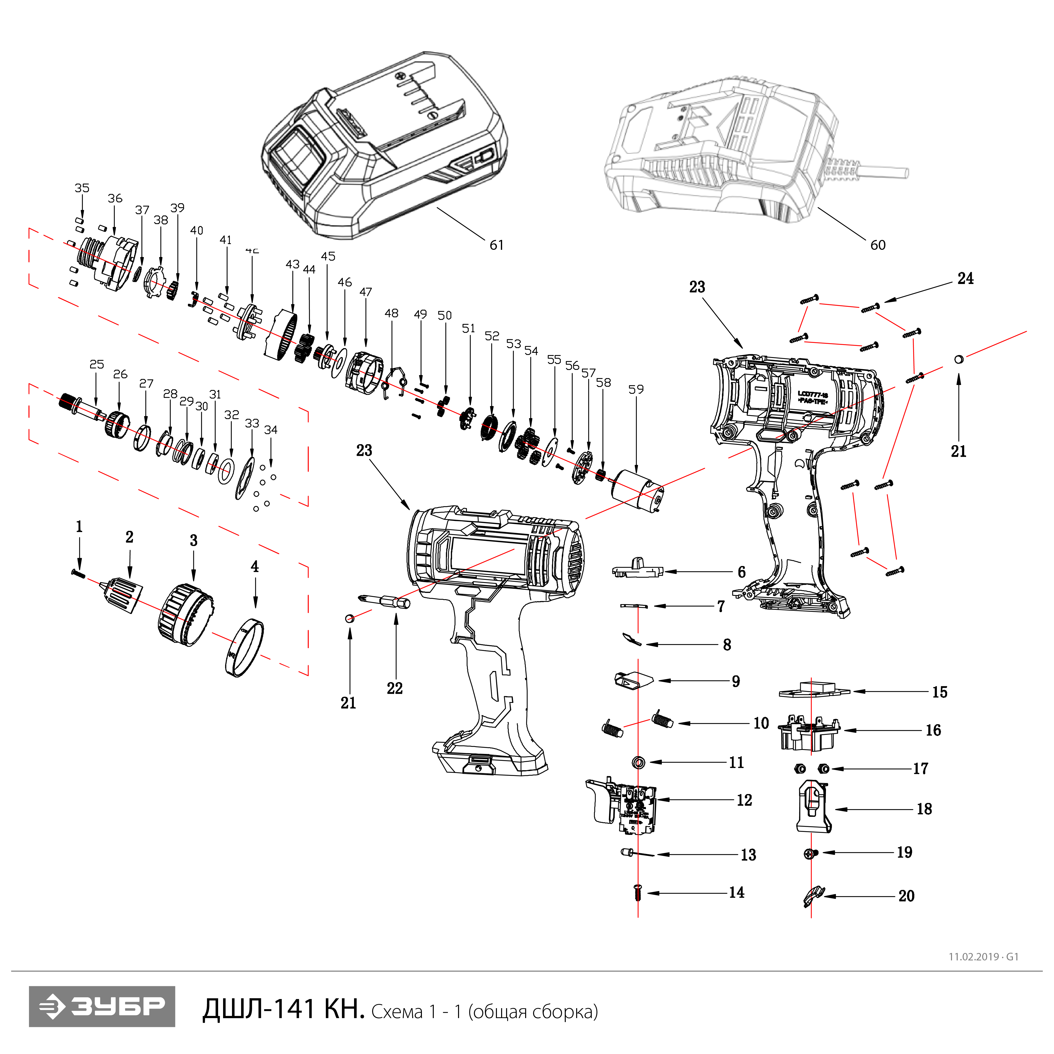 Дрель-шуруповерт, 2 АКБ ДШЛ-141 КН