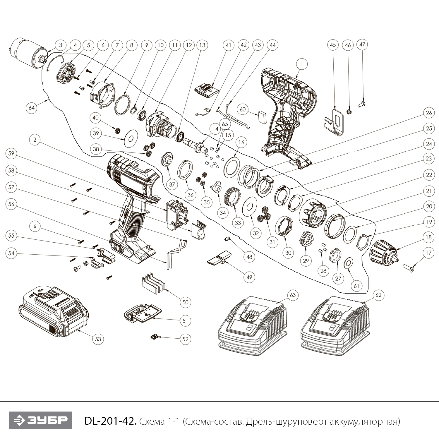 Дрель-шуруповерт, 2 АКБ T7 (4 Ач), в кейсе DL-201-42