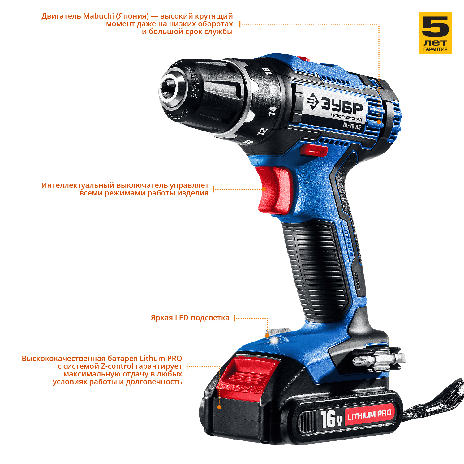 Дрель-шуруповерт, 2 АКБ DL-16 A5