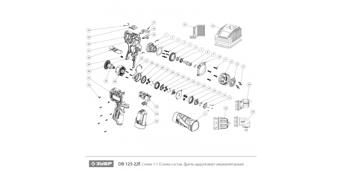 Набор: Бесщеточная модульная дрель-шуруповерт КОМБИ + LED фонарь #4, 3 насадки-патрона, 2 АКБ T7 (2 А∙ч), в кейсе DB-125-22F