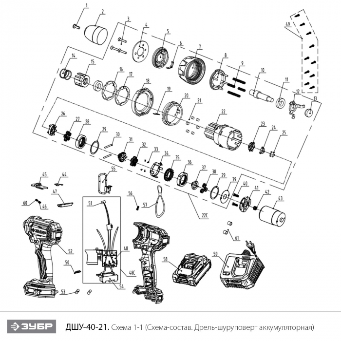 Ударная дрель-шуруповерт, 1 АКБ LMS (2 Ач), в коробке ДШУ-40-21