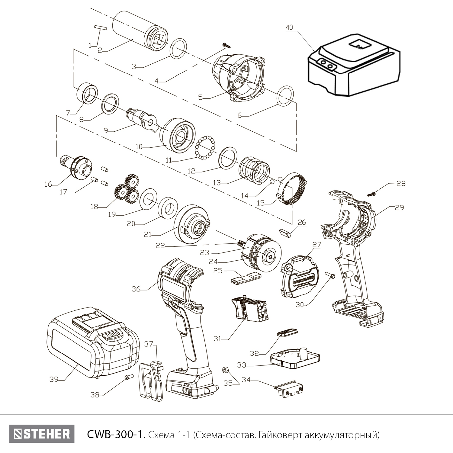 Бесщеточный гайковерт, 1 АКБ (4 Ач), в кейсе CWB-300-1