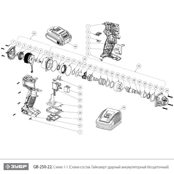 Ударный бесщеточный гайковерт, 2 АКБ T7 (2 Ач), в кейсе GB-250-22