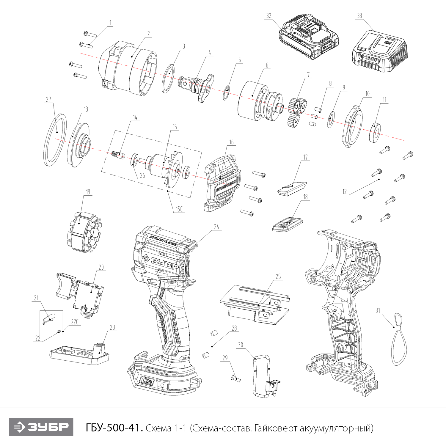 Бесщеточный ударный гайковерт, 1 АКБ LMS (4 Ач), в сумке ГБУ-500-41