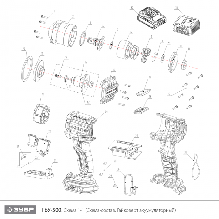 Бесщеточный ударный гайковерт, без АКБ (LMS),в коробке ГБУ-500