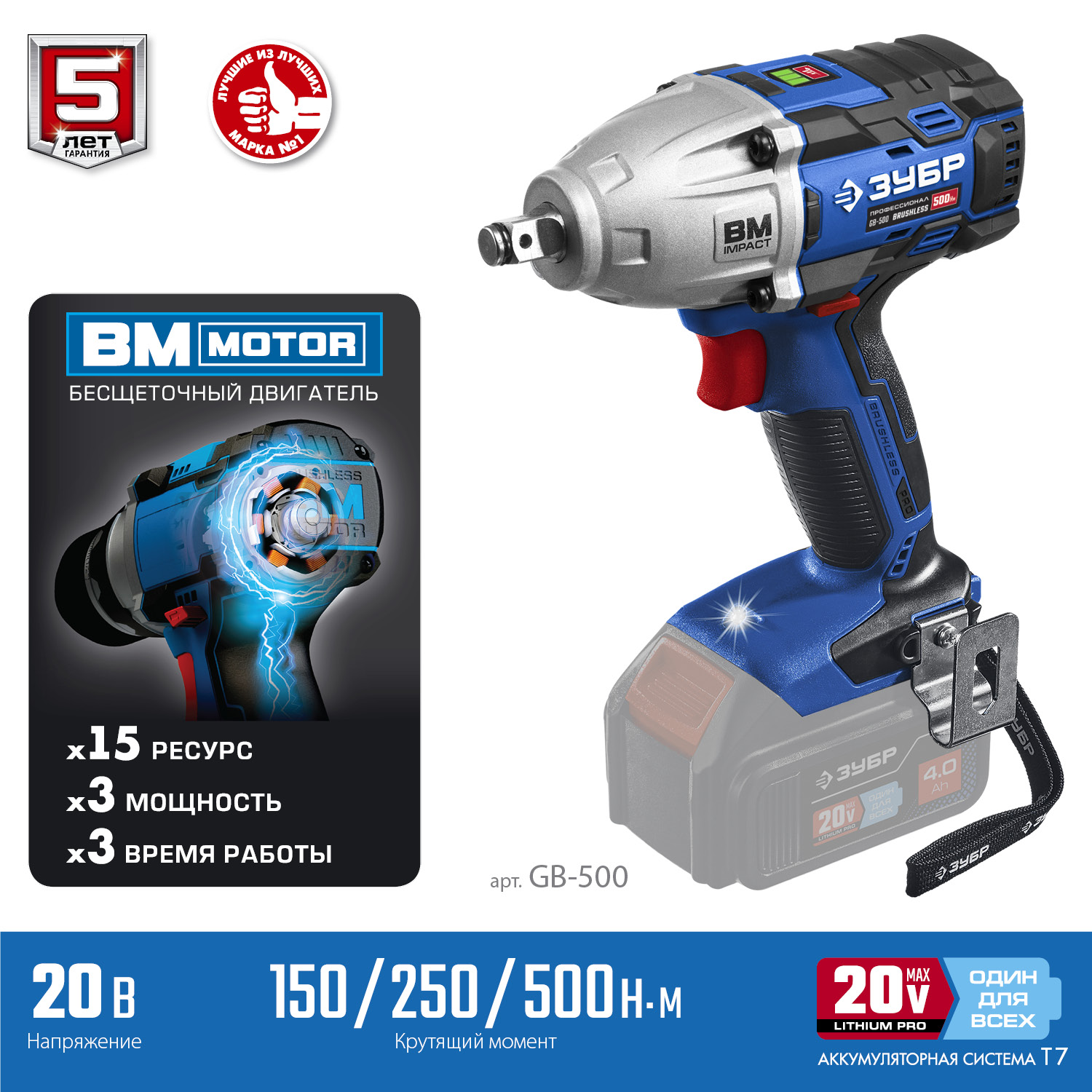 Ударный бесщеточный гайковерт, без АКБ (T7), в коробке GB-500
