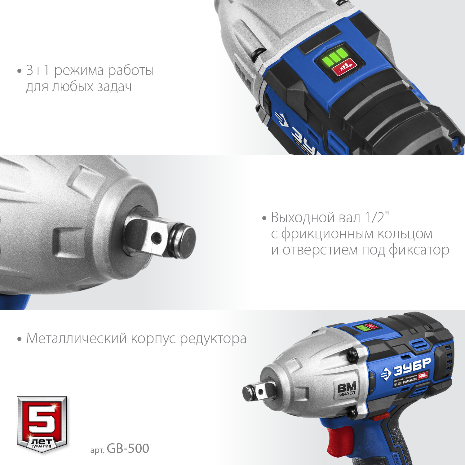 Гайковерт профессионального уровня с BRUSHLESS двигателем высокой эффективности и надежности. Крутящий момент 500 Нм позволяет закручивать крепеж размером до М22. Дополнительный автоматический режим ″срыва″ крепежа упрощает серийную работу