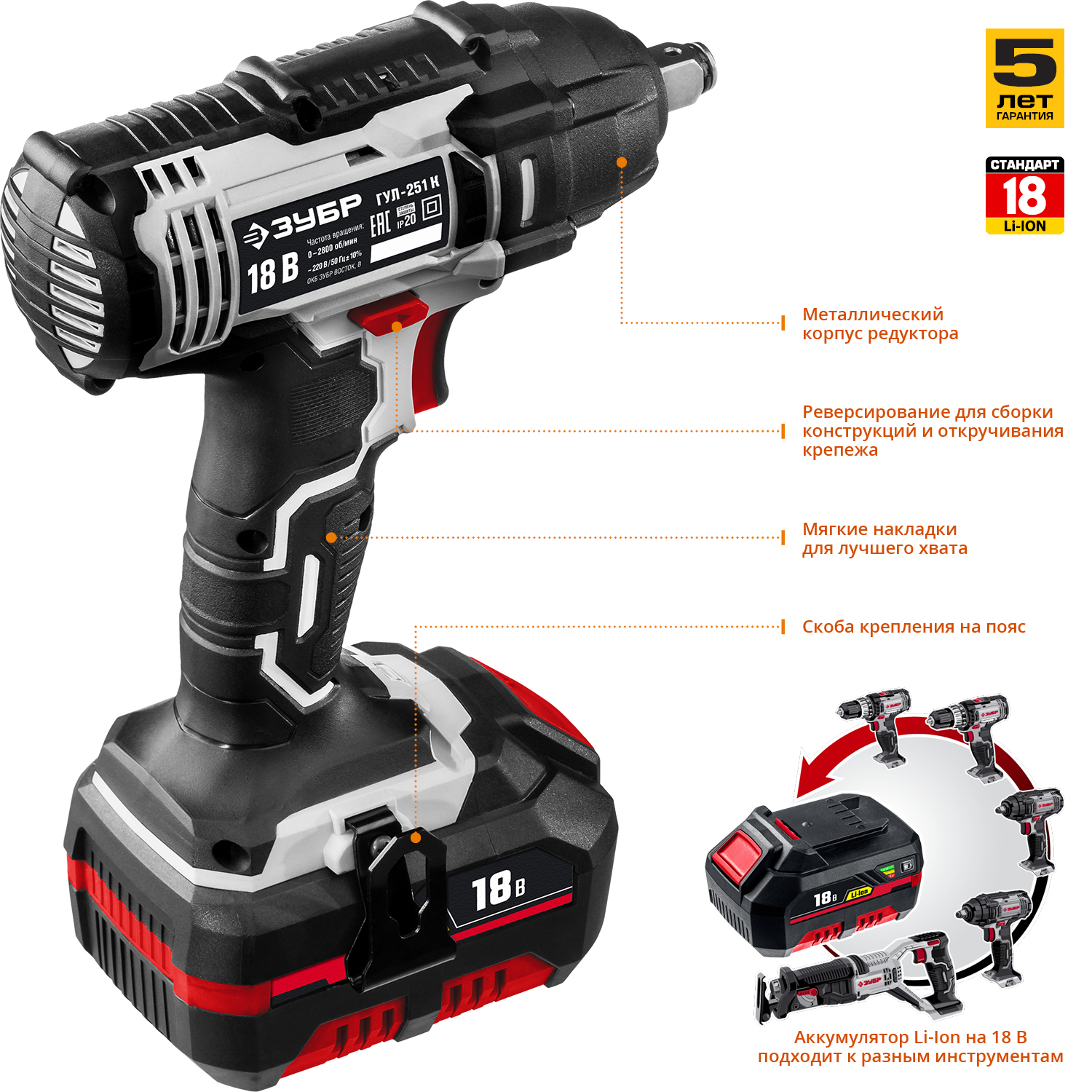 Ударный гайковерт аккумуляторный ГУЛ-251 К