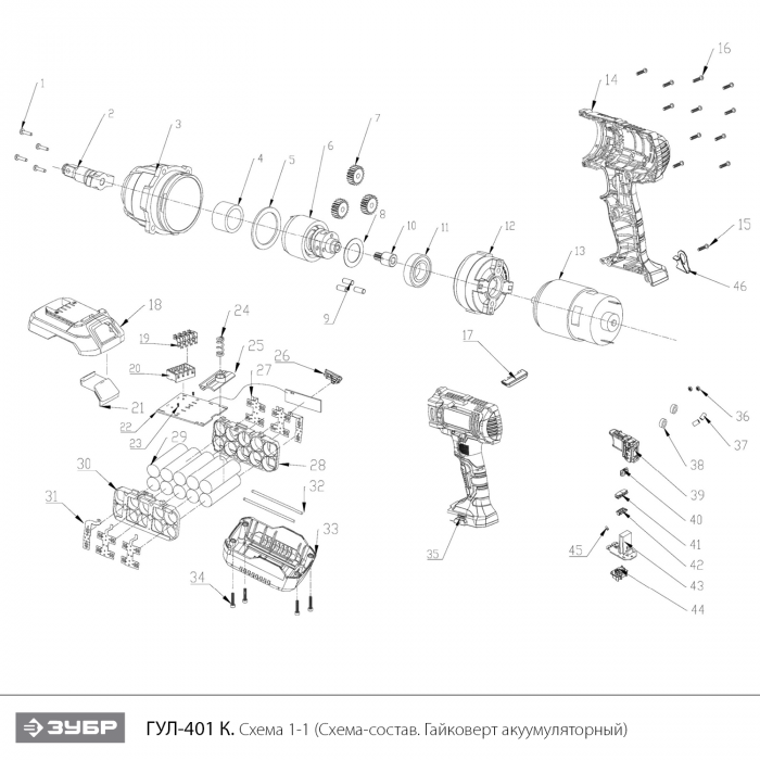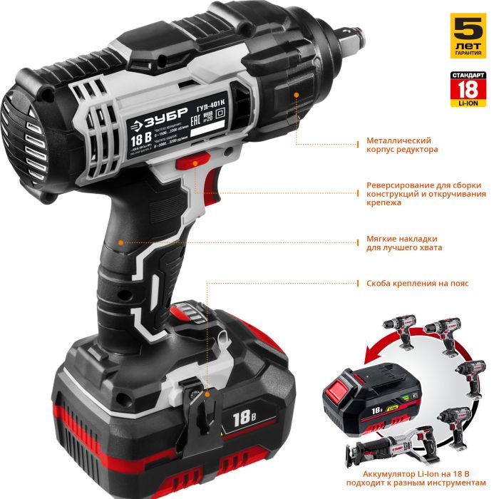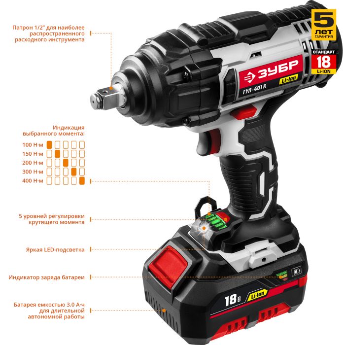 Ударный гайковерт аккумуляторный ГУЛ-401 К