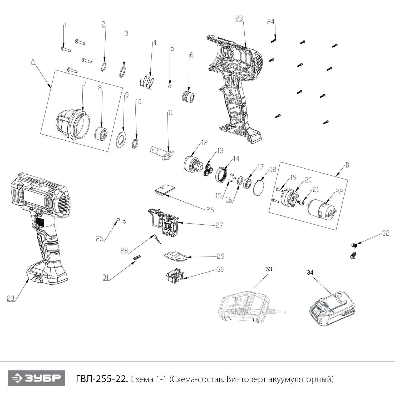 Винтоверт ударный, 2 АКБ С1-18 (2 Ач), в кейсе ГВЛ-255-22