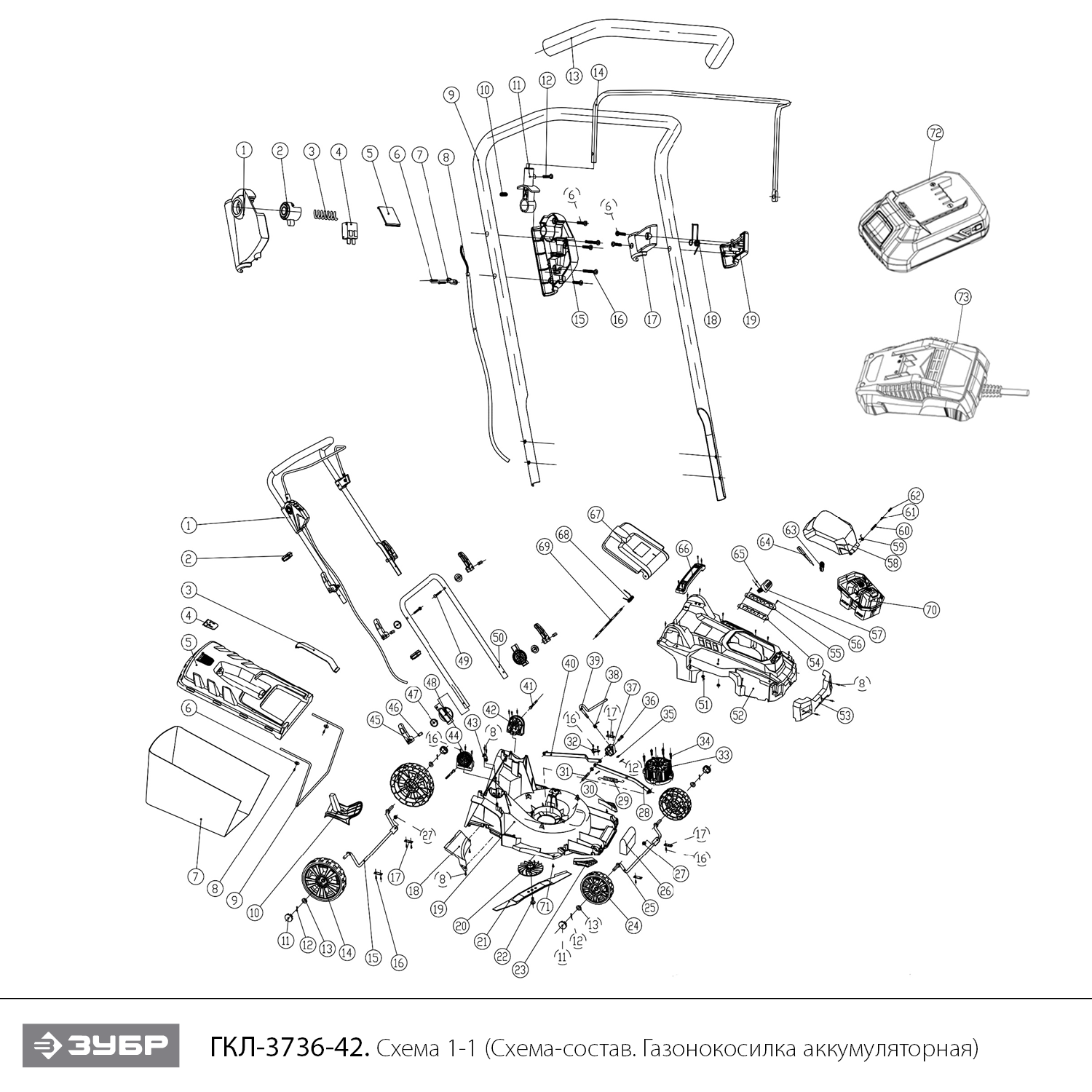 Бесщеточная газонокосилка, 2 АКБ (4 Ач) ГКЛ-3736-42