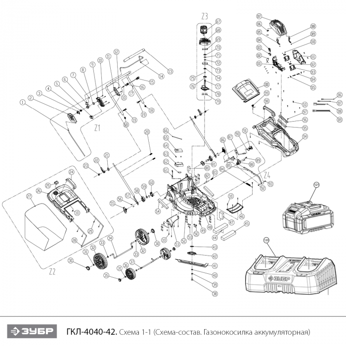 Газонокосилка аккумуляторная бесщеточная 40 В (2x20В), 2 АКБ LMS (4 Ач) ГКЛ-4040-42