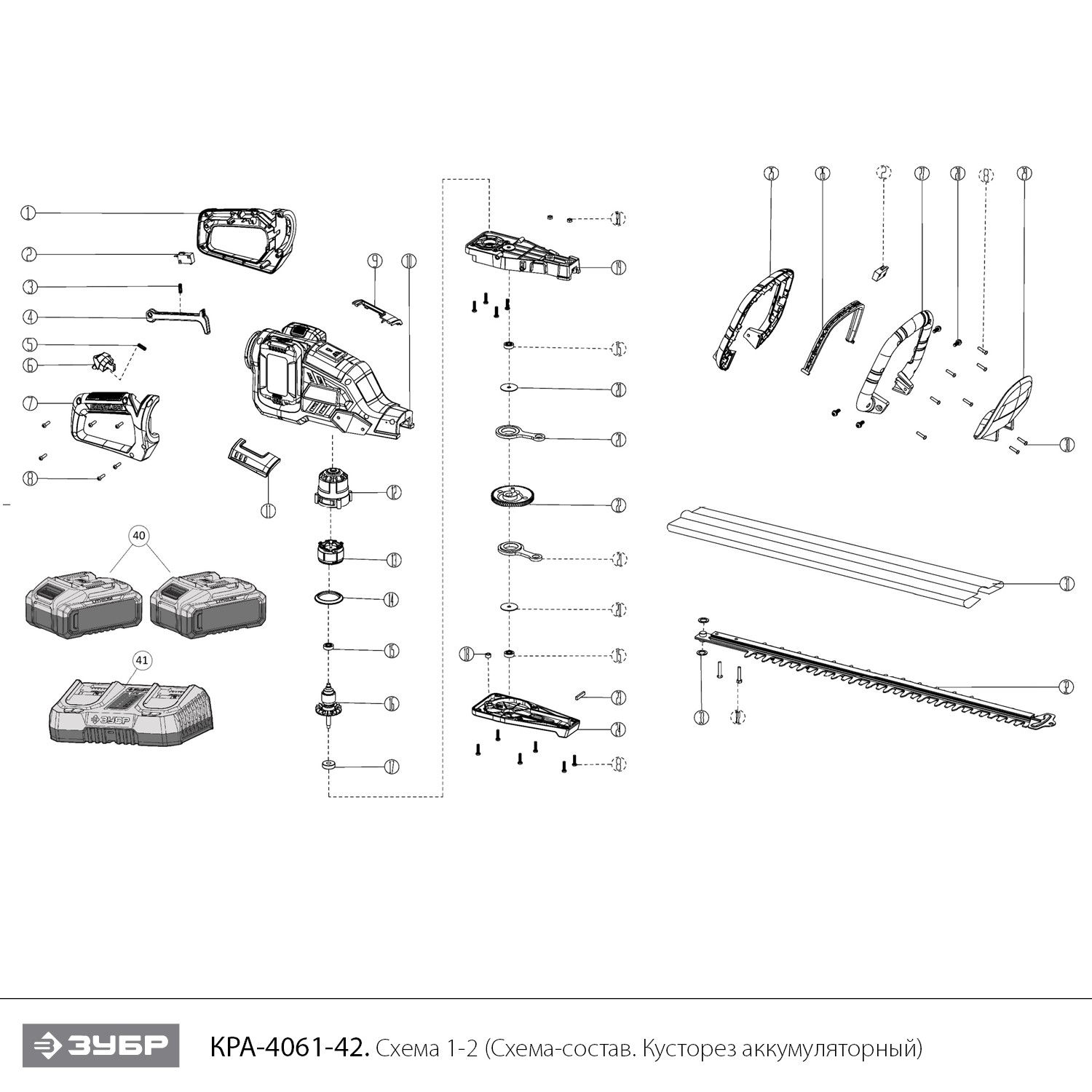 Кусторез аккумуляторный бесщеточный 40 В (2x20В), 2 АКБ LMS (4 Ач) КРА-4061-42