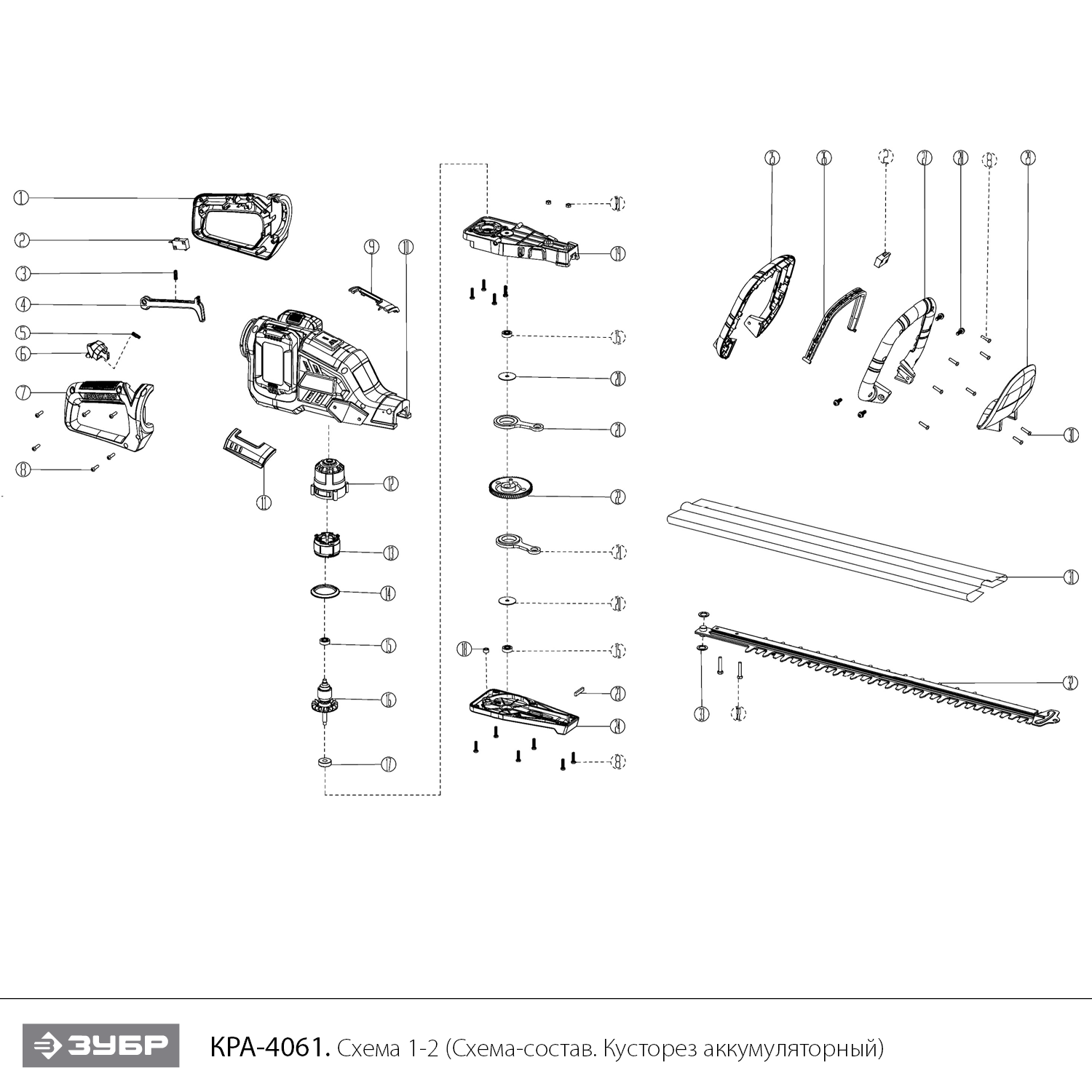 Кусторез аккумуляторный бесщеточный 40 В (2x20В), без АКБ (LMS) КРА-4061