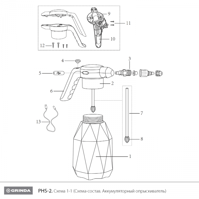 Опрыскиватель аккумуляторный Li-Ion, 2 л PHS-2
