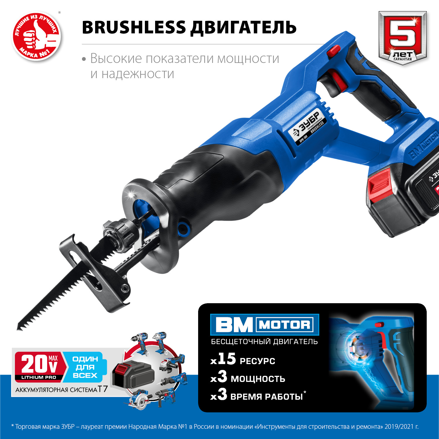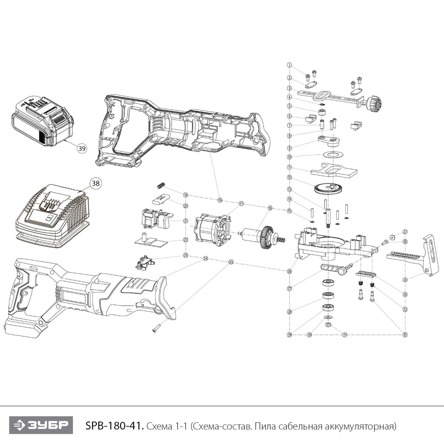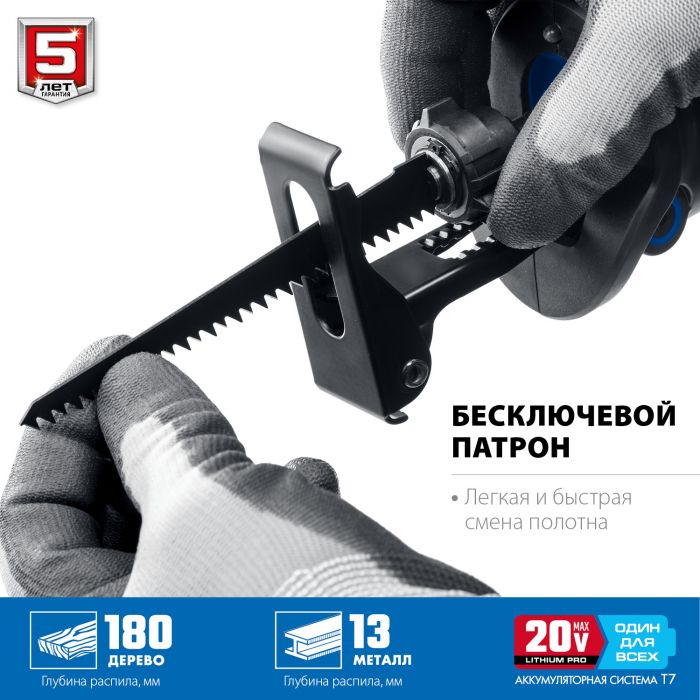 Бесщеточная пила сабельная, 1 АКБ T7 (4 Ач), в коробке SPB-180-41