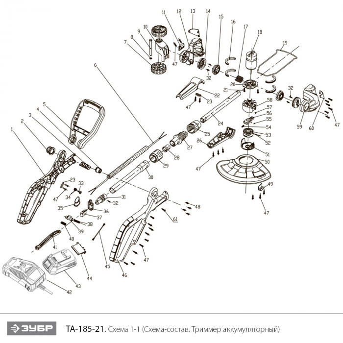 Аккумуляторный триммер, 1 АКБ (2 Ач) ТА-185-21
