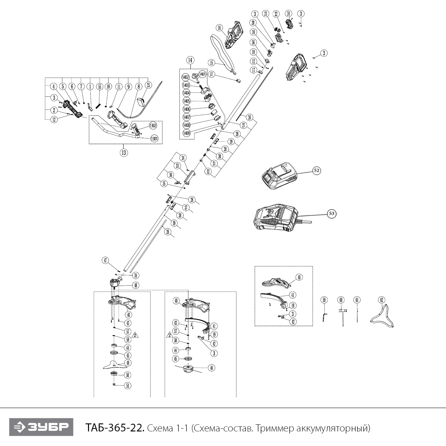 Бесщеточный триммер, 2 АКБ (2 Ач) ТАБ-365-22