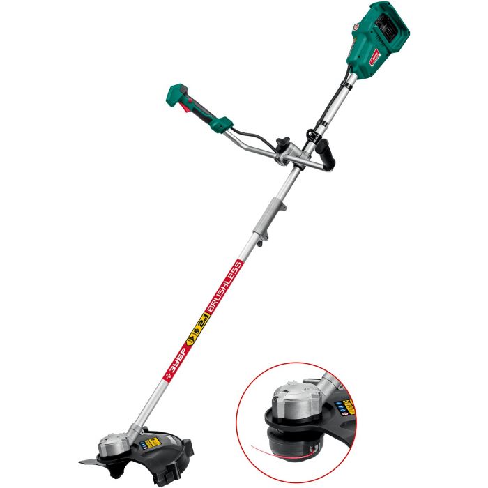 Универсальный инструмент на участке, способный заменить газонокосилку и триммер. Оснащается катушкой с леской (для мягкой растительности) и ножом (для грубой растительности). Большая мощность двигателя BRUSHLESS и две батареи позволяют косить довольно густую и грубую растительность длительное время