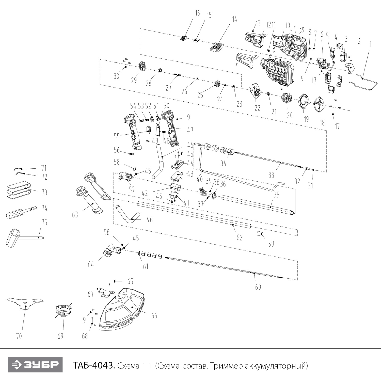 Триммер-коса аккумуляторный бесщеточный 40 В (2x20В), без АКБ (LMS) ТАБ-4043