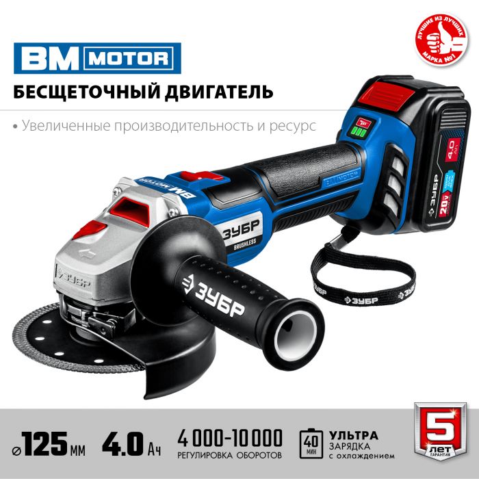Бесщеточная УШМ, 2 АКБ (4 Ач), в сумке AB-125-42
